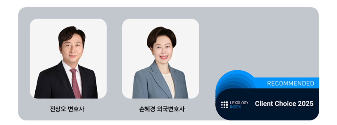 세계적인 법률 전문 매체인 Lexology Index가 매년 발표하는 Client Choice 2025에서 법무법인(유한) 화우의 전상오 변호사와 손혜경 외국변호사(NY)가 '고객이 가장 신뢰하는 변호사'에 선정되었습니다.