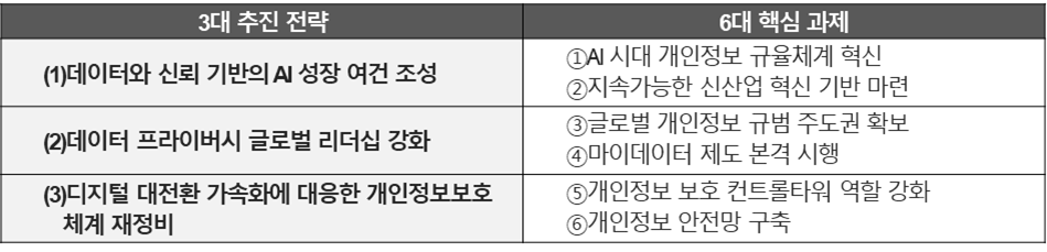 개인정보위는 3대 추진 전략 하에 6대 핵심 과제를 제시했습니다.