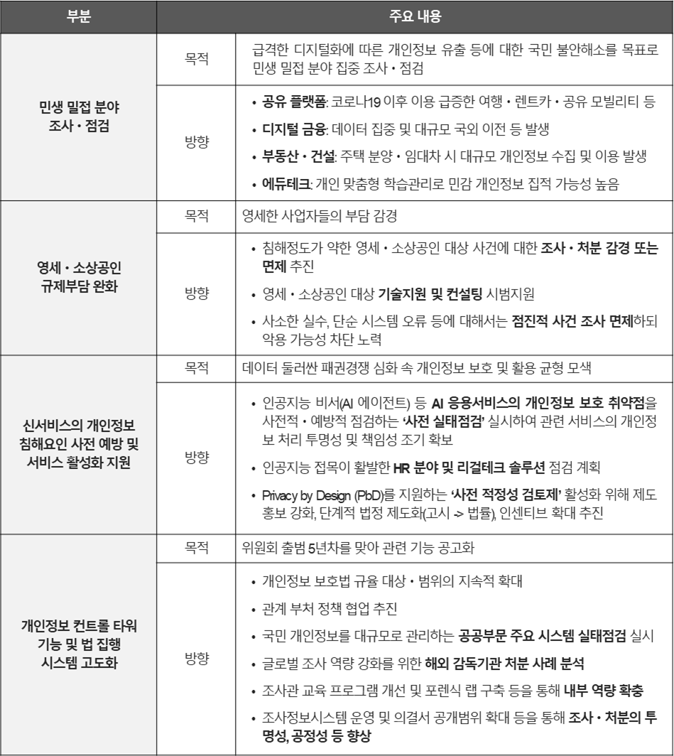 개인정보위가 2025. 1. 23. 발표한 「2025년 조사업무 추진 방향」의 주요 내용은 아래와 같습니다.