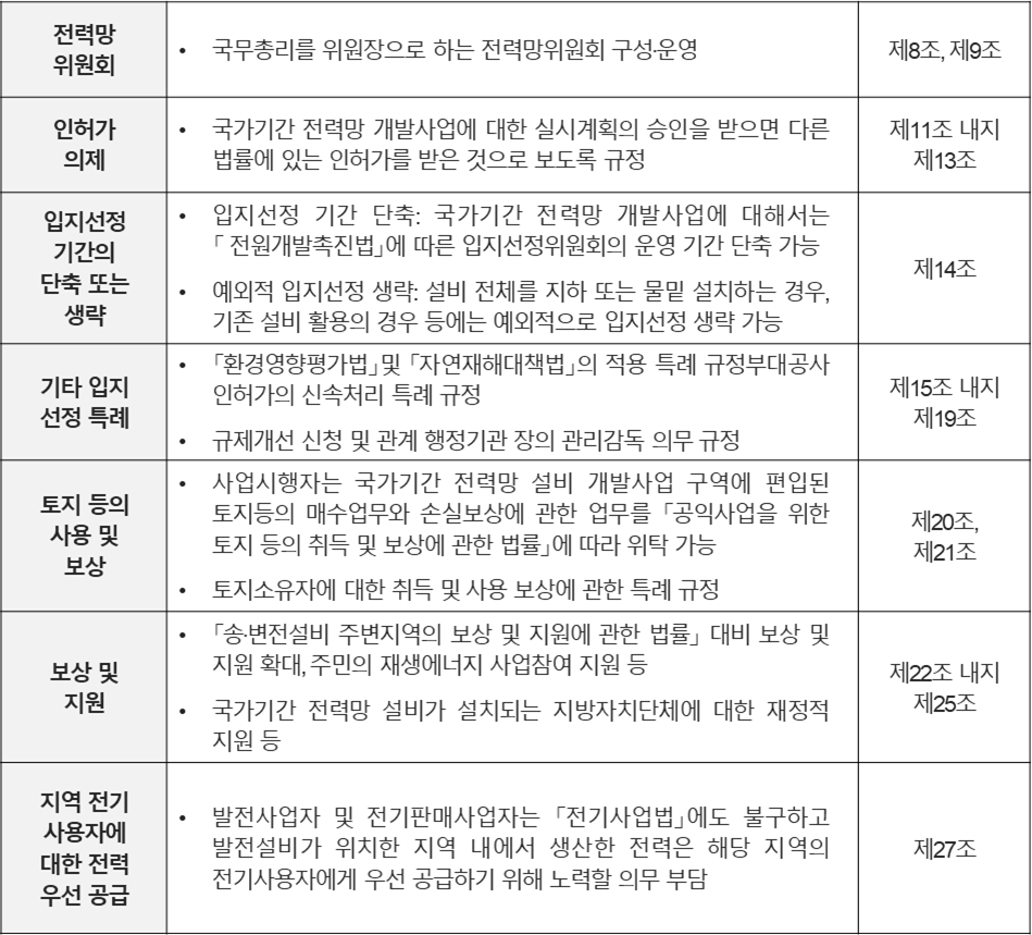 1) 전력망특별법의 주요내용