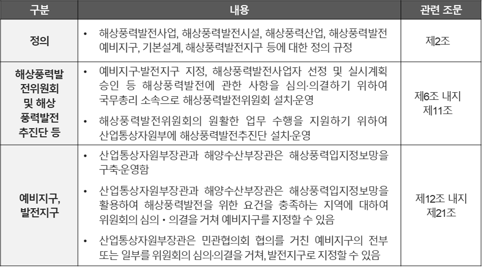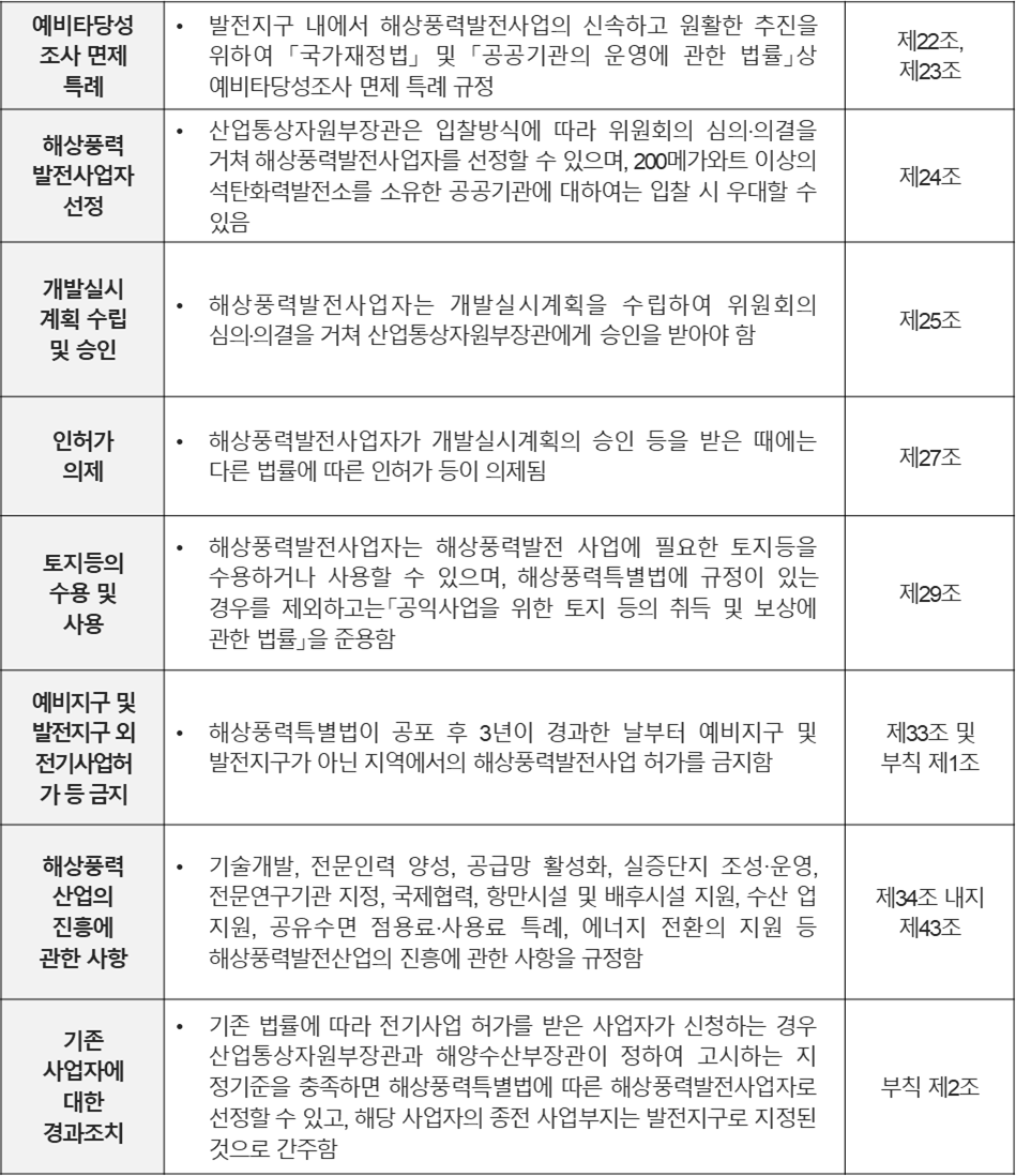 2) 해상풍력특별법의 주요내용