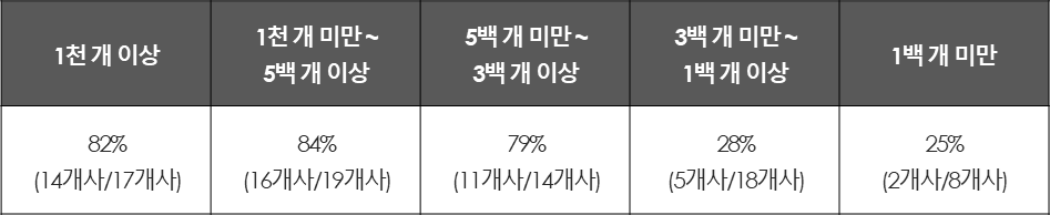 < 70% 이상 계약변경 가맹본부 현황(가맹점 규모별) >