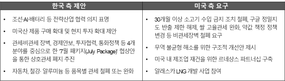 •6월 24-25일 (3차 기술회의): 25% 상호관세 및 품목관세 철폐 목표 설정