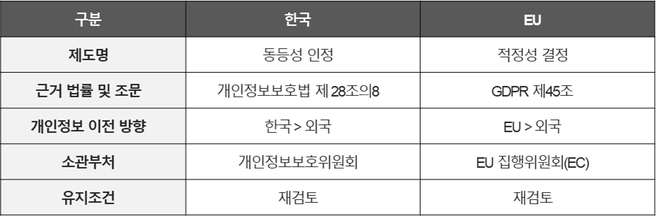 1)  한-EU (개인정보 국외이전을 위한 동등성 인정 제도)