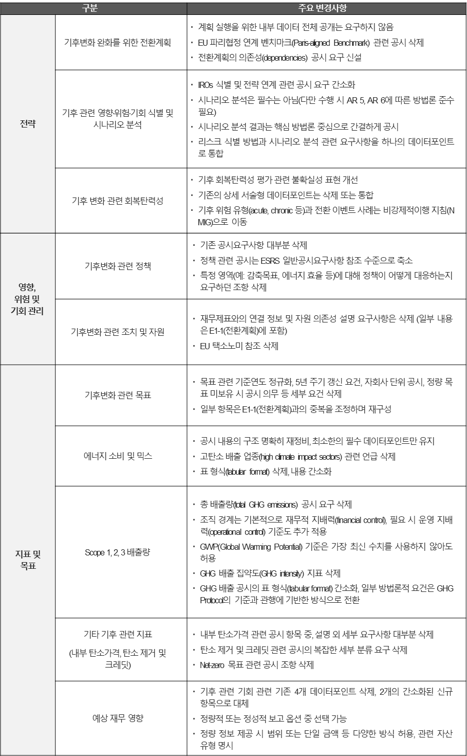 • 기후변화 공시기준(ESRS E1) 주요 변경사항