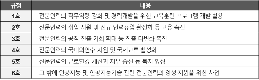 라. AI 전문인력 지원(제21조 제1항)