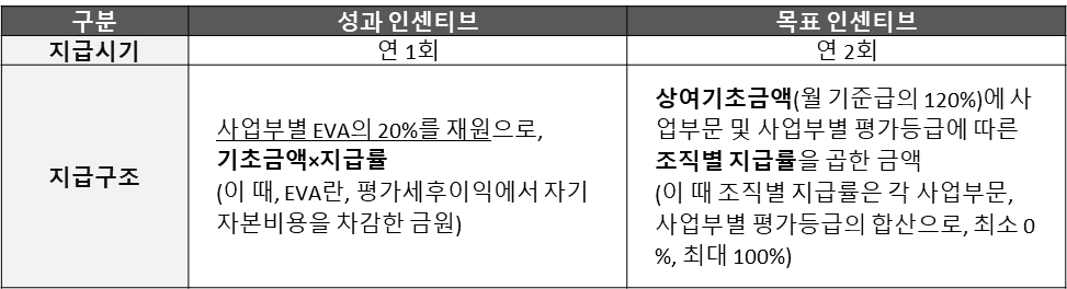 S전자는 근로자에게 다음과 같은 두 종류의 인센티브를 지급해 왔습니다.