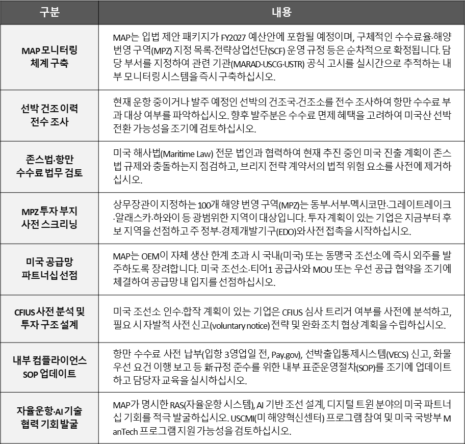 본 뉴스레터는 MAP의 핵심 내용을 분석하고, 한국기업이 직면할 기회와 법적 리스크, 그리고 실질적인 대응 전략을 제시합니다.